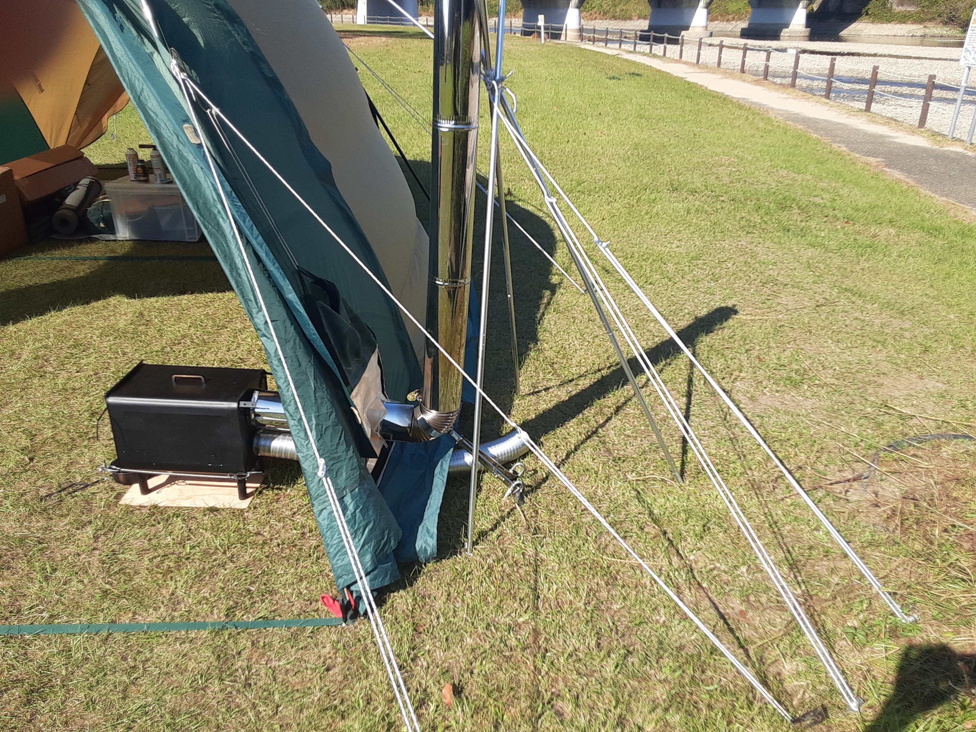 以前の設置はテントの横から煙突を出していましたが